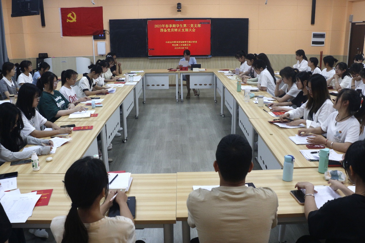 本次会议严格按照预备党员转正支部大会讨论各项程序进行。会议伊始,莫柳静等13名预备党员逐一汇报在预备期的思想政治、工作表现、学习生活等方面情况。随后,全体正式党员对预备党员在预备期的表现进行讨论发言,主要说明预备党员在预备期思想政治、学习情况、作风纪律等表现。