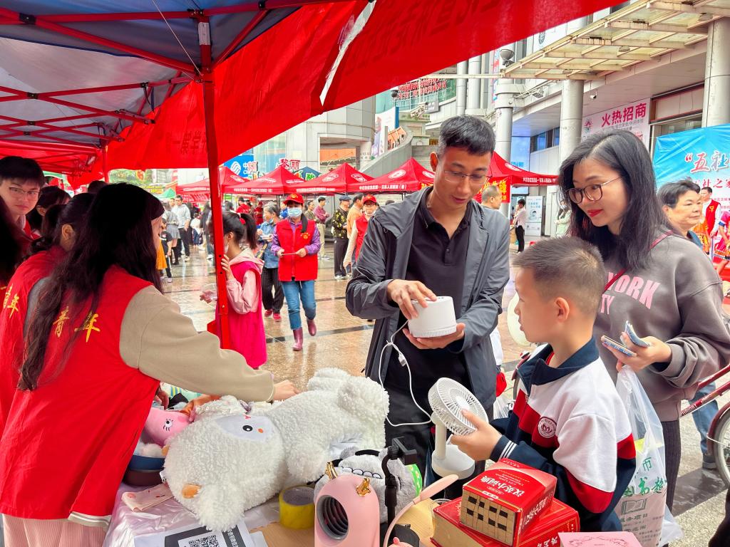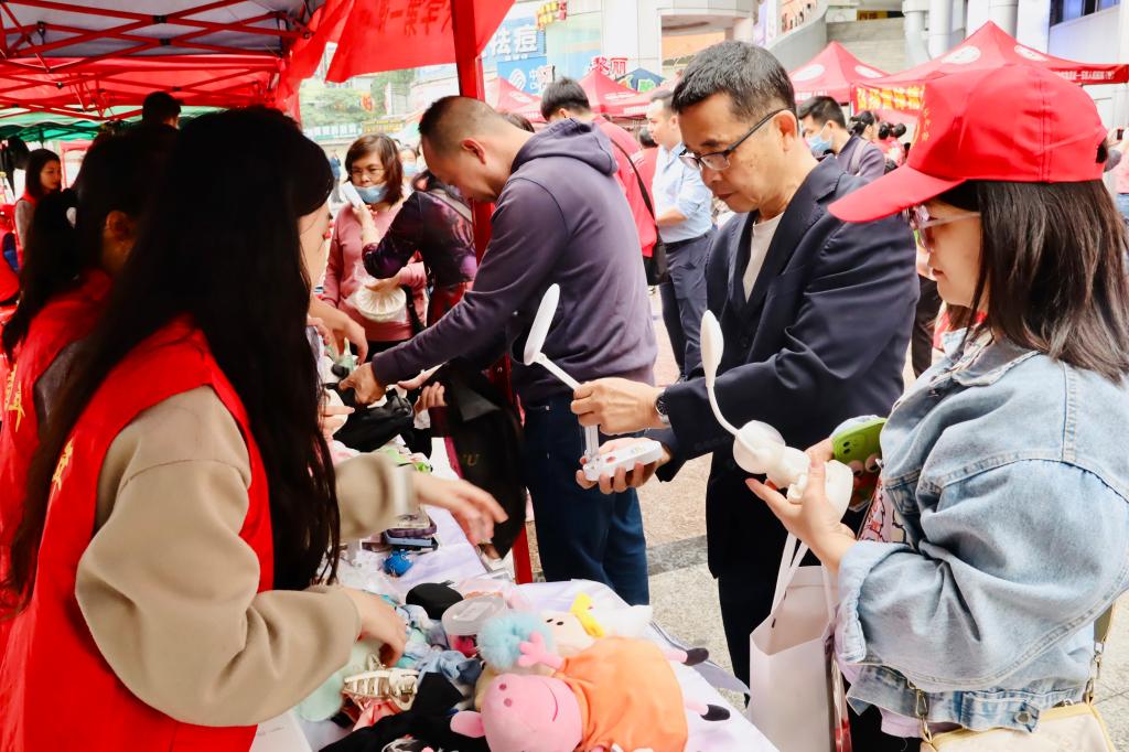 义卖现场,摊位前人头攒动、热闹非凡,志愿者热心耐心讲解,为闲置物品寻得有缘人,筹得更多爱心善款。爱心义卖活动持续近3小时,师生共同将义卖善款775.20元现场捐赠给了社区普利社会工作服务中心,用于助老纾困。