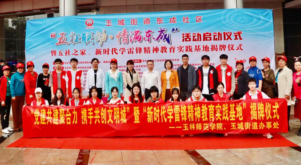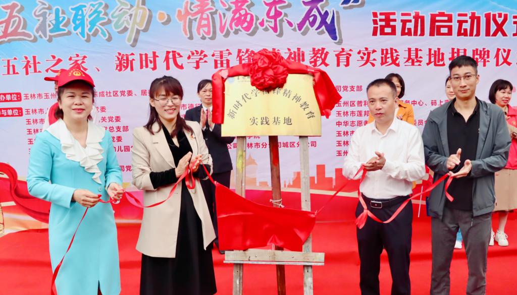 为了深入学习贯彻习近平总书记关于弘扬新时代雷锋精神作出的一系列重要论述,推动新时代学雷锋活动不断拓展内容、创新形式、丰富载体。3月25日,公司与玉城街道东成社区联合在玉州区东门商业广场开展“五社联动 情满东成”活动启动仪式暨“五社之家”“新时代学雷锋精神教育实践基地”揭牌仪式及系列志愿服务活动。玉州区委组织部副部长、区两新党工委书记钟艳,玉城街道党工委书记肖德嵩,玉城街道东成社区党委书记、居委会主任王雪梅,公司团委副书记(兼)、党委组织部组织科科长李岸,团委副书记(兼)、太阳成集团tyc122cc团委书记周美艳,太阳成集团tyc122cc员工第三党支部书记潘金兰出席活动,玉林市人民检察院、玉林市城市管理监督局等23个单位、100多名员工志愿者和社会工作者参加了此次活动。