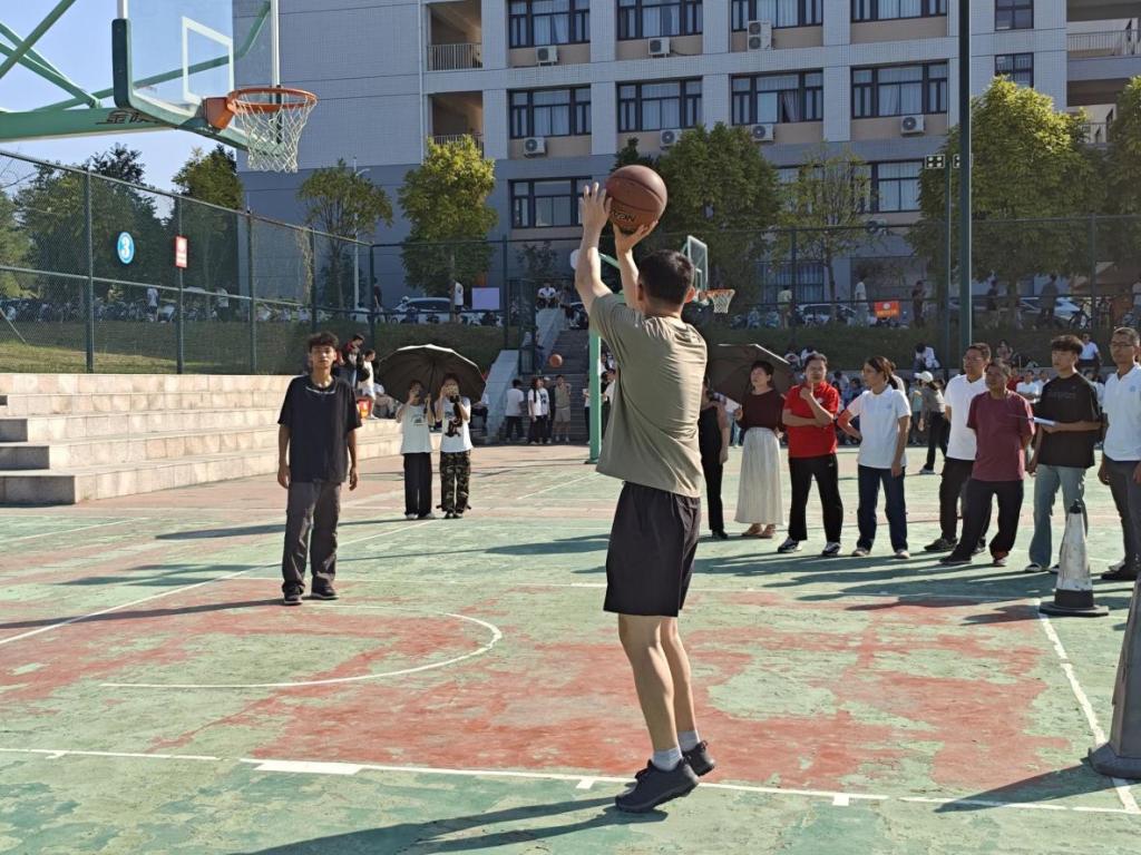 在本次校运会的教工组移动投篮比赛现场,气氛热烈非凡。老师们一改平日严肃形象,展现出别样的活力。他们手持篮球,目光坚定,身形矫健的移动着,大脑在快速的移动中寻找最佳投篮时机。每一次出手,都带着对胜利的渴望。篮球在空中划过一道道优美的弧线,现场的加油声此起彼伏,如同汹涌澎湃的浪潮,一波未平一波又起,为这样视觉的盛宴奏响了激昂的乐章。