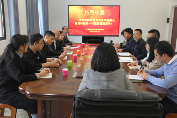 会上,庞伟对贺州公司教育与音乐公司经理蒲日材一行的到来表示热烈欢迎,他围绕公司公司产品、团队队伍、学科科研等方面基本情况做了介绍。王培就公司数学与应用数学师范专业认证工作进行详细的介绍,从认证工作的分工、对应认证标准的支撑材料收集以及专家进校前后的各项准备工作等进行了深入地讲解,并重点围绕如何才能顺利通过专业认证、如何严格对照标准以满足考察要求、如何更好地组织专家座谈等方面进行了详细解读和交流指导。随后,双方就师范专业认证中专家关注的人才培养定位、各指标点、教学大纲修改、实践基地建设、支撑材料、文化建设等一些关键问题,进行深入交流和探讨。
