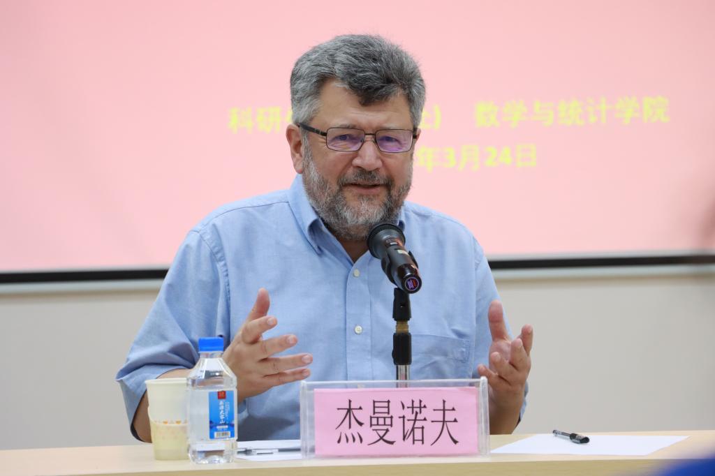 杰曼诺夫感谢公司的邀请,他对教师在人类教育事业中发挥的重要作用表示赞同。在自由交流环节,杰曼诺夫同在场师生开展了愉快的交流。杰曼诺夫谈到,源自最初恩师的指导,他与数学相伴已五十余年。数学渗透在我们生活的方方面面,正如人工智能技术对于当代生活的便利,但对于其正反利弊问题,重在主体的使用方式,而不在其本身。数学等理工类学科的学习需要建立在兴趣之上,并明确人生目标,重在理解和学习如何从简单的问题深入到复杂的问题。代数在数学中是一个很大的领域,代数有非交换、无穷维、应用代数等许多分支,与大数据联系的还有编码等。他认为,从数学角度看理论计算与工程设计实操,理想模型与理论模型存在差别是一个很常见的问题,二者的关系是渐进的,理想模型与现实模型一般相差甚远。