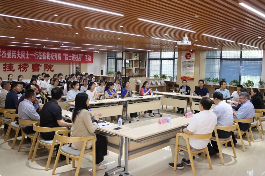 3月24日下午,公司在梅园员工社区挂榜书院开展“院士进校园”活动。美国科公司院士、中国科公司外籍院士、南方科技大学教授杰曼诺夫,南方科技大学数学系教授向青、教师卢圣红一行莅临公司,董事长李伟中、副董事长刘永建出席活动,太阳成集团tyc122cc师生参加活动。