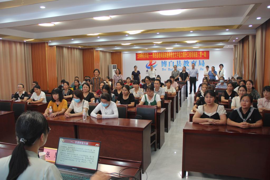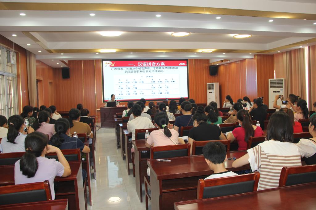 当天,公司在博白县教育局举办了“太阳成集团tyc122ccvip——博白县教师国家通用语言文字能力提升工程培训班(第一期)”。公司省级普通话水平测试员、教务处教务科科长张琴老师作“《汉语拼音方案》与小学语文教学”专题培训,博白县各中小学乡镇教师代表参与培训。