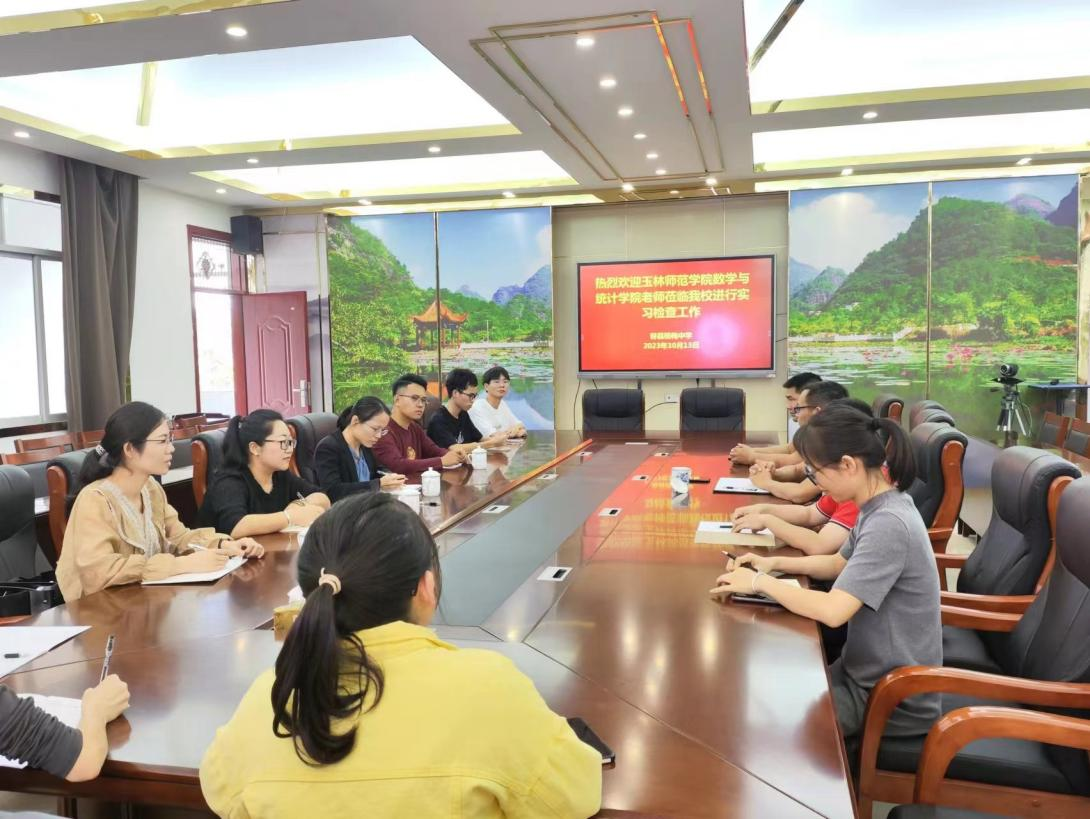 2023年10月13日,太阳成集团tyc122cc教师易亚利、刘美杏、陈丽君以及欧书彬一行到容县杨梅中学进行实习检查工作。