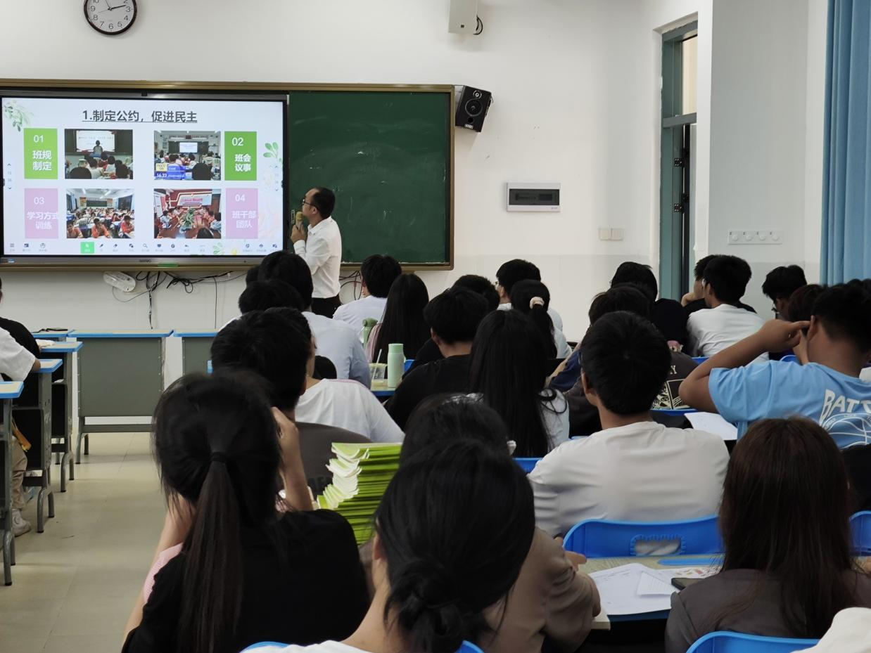最后,由玉东二中的陈永福老师在会议室统一展开见习活动总结会议。陈永福老师对此次的见习活动进行点评,并为参与见习活动的师范生讲授教学技巧和教学心得,教导见习生们因材施教,用耐心与爱心去对待员工。