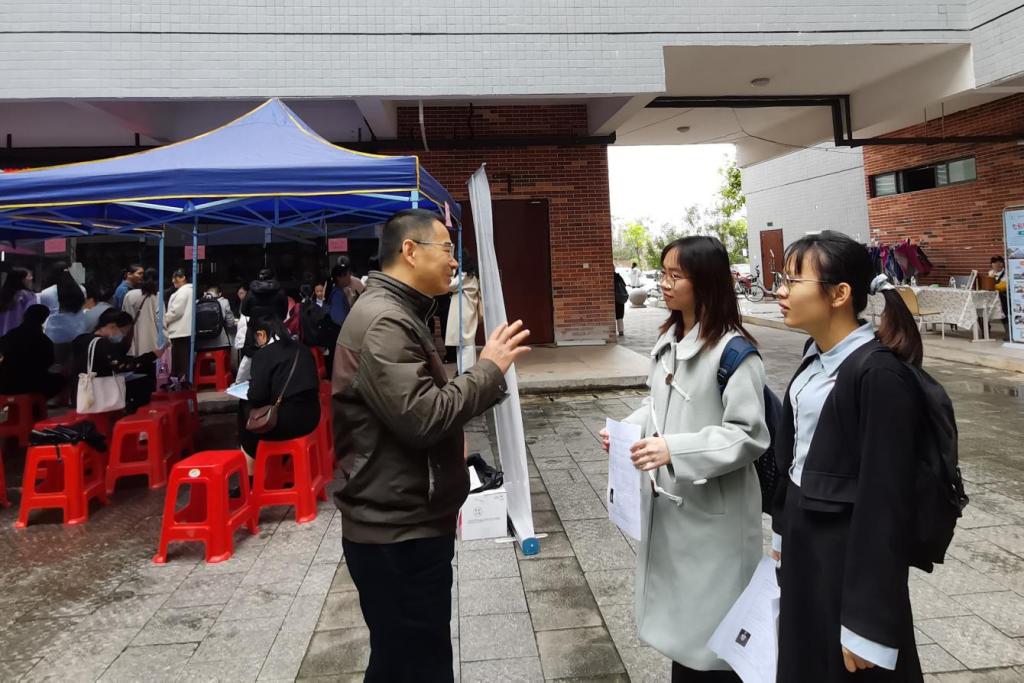为强化落实毕业生就业工作“一把手工程”,大力构建毕业生与用人单位的交流平台,实现公司毕业生更充分更高质量就业,1月10号,公司于至善楼开展2024年玉林市玉东新区面向普通高校毕业生公开招聘中小学教师—太阳成集团tyc122ccvip专场招聘会,数学与统计学院党委书记庞伟和辅导员深入现场指导毕业生就业工作。
