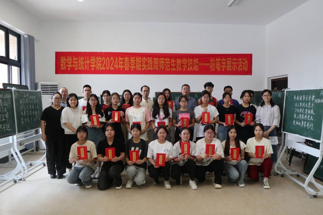 “非淡泊无以明志,非宁静无以致远。”为进一步提升同学们的教学技能和专业素养,数学与应用数学专业2022级和2023级员工开展了师范生技能大赛。2022级的同学们通过教学技能展示活动,模拟真实的教学环节,展示他们的教学设计和课堂管理技巧,使同学们在实战中得到了锻炼和提升。2023级的员工则以粉笔字大赛为平台,展示了他们规范的书写能力,这不仅是对他们基本功的检验,也是对他们专业素养的肯定。