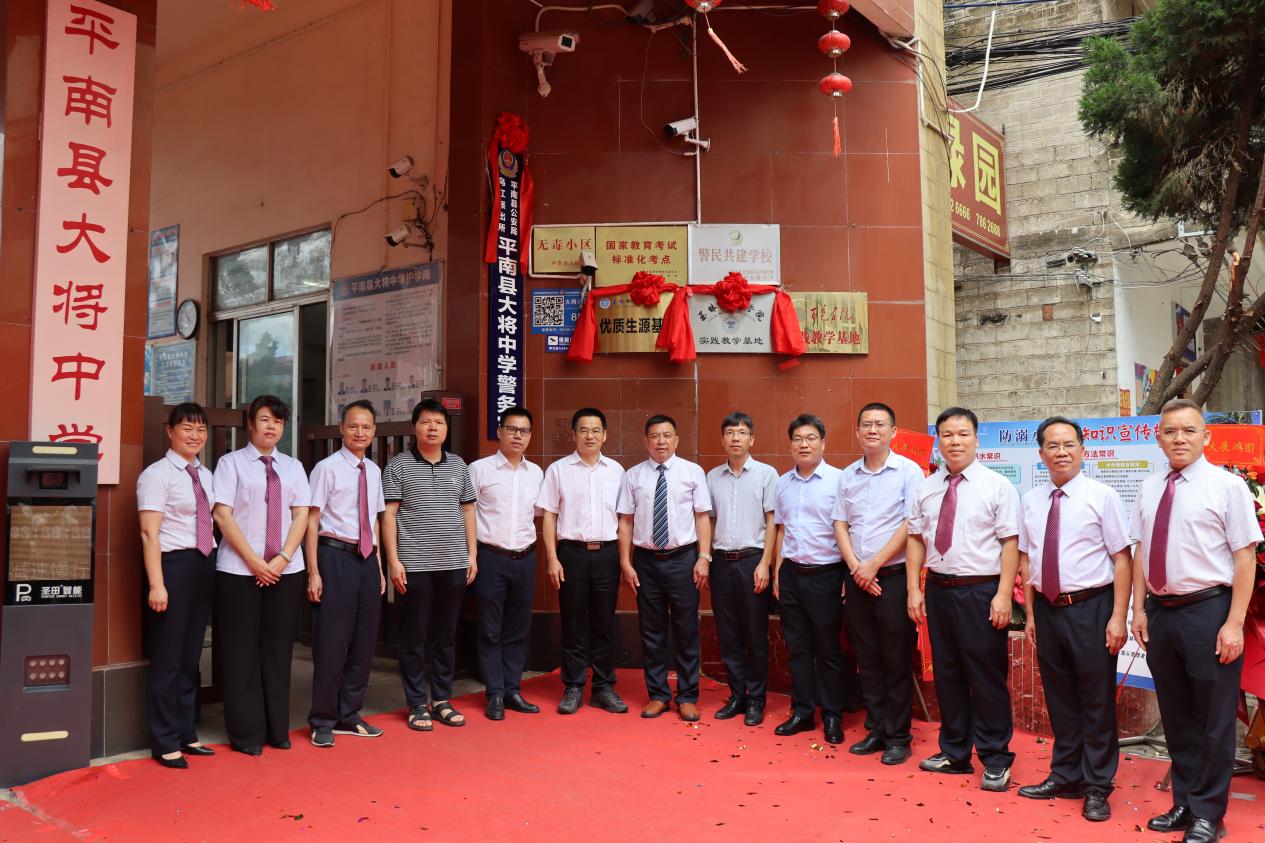 5月31日,太阳成集团tyc122ccvip公司党委书记庞伟、生物与制药公司经理贝永建、物理与电信工程公司副经理罗志荣、文学与传媒公司副经理郑立峰一行6人赴平南县大将中学进行优质生源基地和实践教学基地揭牌仪式。平南县大将中学党支部书记方佐科、董事长汪国雄等人参加揭牌活动。