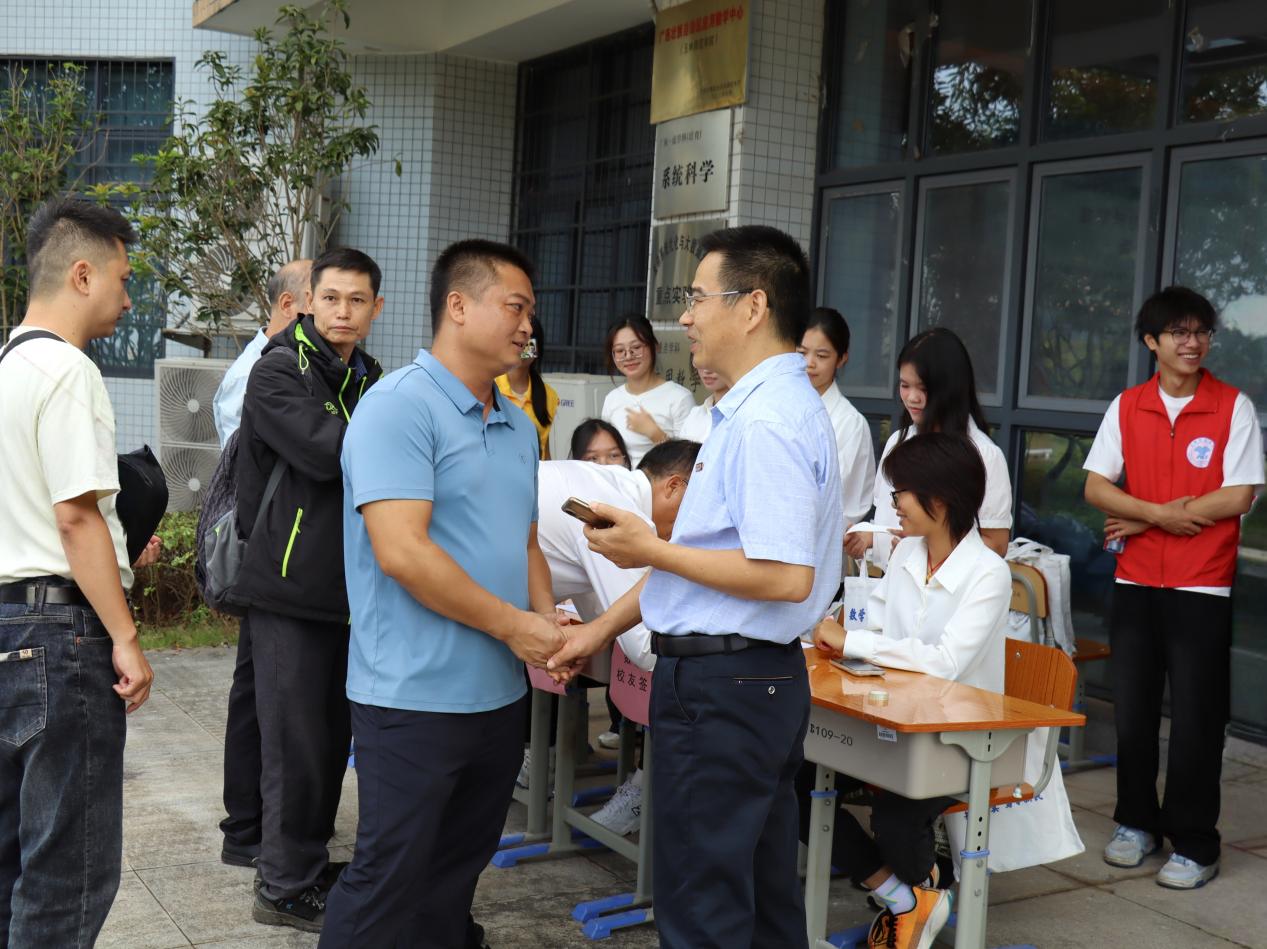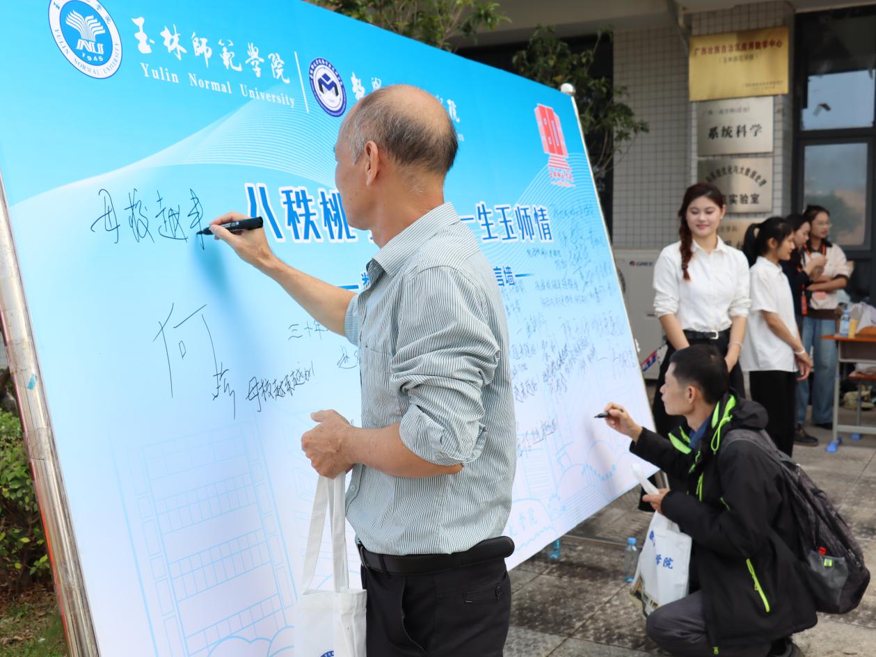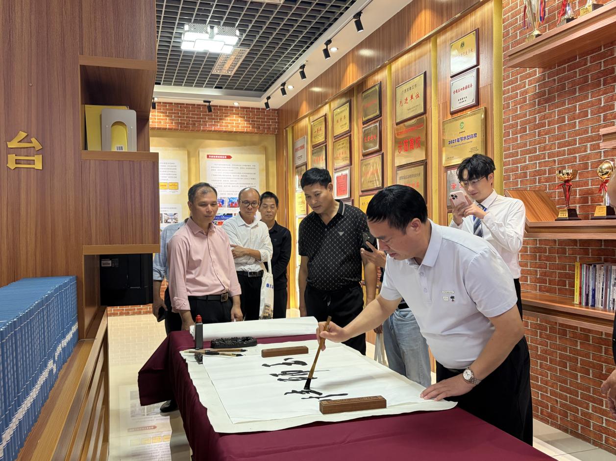 此外,11月8日上午,员工们在图书馆总支书记吴坚文的带领下,参观了图书馆六楼的桂东南历史纪念馆与植物标本馆,重温了公司80年的发展足迹。在参观重点实验室时,接待人员详细介绍实验室的建设历程、研究方向及前沿设备。员工们对此表现出浓厚兴趣,并结合自身资源经验,就成果转化、人才培养及产学研合作等方面提出了宝贵建议,现场达成了深化协同创新、搭建合作桥梁的共识。参观尾声,一位员工更是挥毫写下“玉师情”三个大字,将对母校的眷恋倾注于笔端。