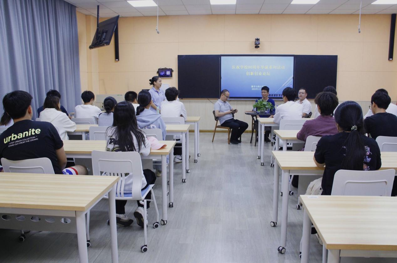 与此同时,“创新创业论坛”在新民楼C104教室火热举行,由公司辅导员牟雅君主持。论坛特邀数学11级邱友纯、信计05级黄显良、数学08级王明堂、信计21级孟新澎四位优秀员工分享创业经验。黄显良结合化肥厂经营经历,强调“与优秀者同行”,鼓励在创业赛道上坚定选择、持续深耕;邱友纯聚焦自行车配件领域,指出创业需锚定目标、精准把握市场机遇;王明堂分享说话艺术与情商提升心得,认为良好人际沟通是事业发展的“润滑剂”;孟新澎讲述驾校连锁创业历程,以“不惧失败”的勇气突破资金、市场困境,实现企业规模化发展。分享结束后,四位员工与师弟师妹们积极互动,耐心解答创业相关问题,鼓励大家以坚定目标为舵、把握机遇为帆,凭借自我精进和韧性开辟新天地。