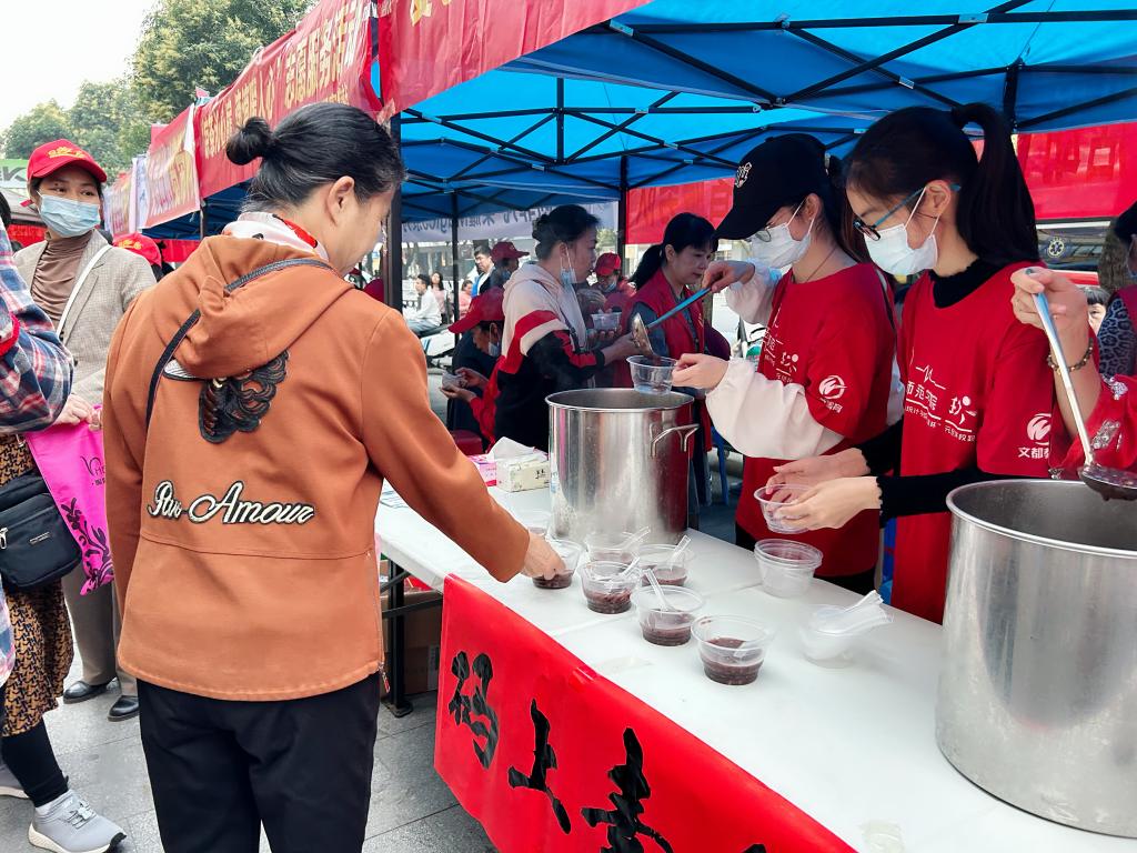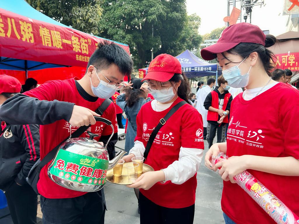 他们穿梭在人群之中,为过往老年人群众、工作人员送上敬老爱心餐劵、暖心茶水、八宝粥,一声声“谢谢......”,让他们沉浸在忙碌中“乐此不疲”,大街小巷一派“热气腾腾”的景象。进一步提高社区居民群众的获得感、幸福感,大力营造“雷锋精神,人人可学;志愿服务,处处可为”的浓厚氛围。