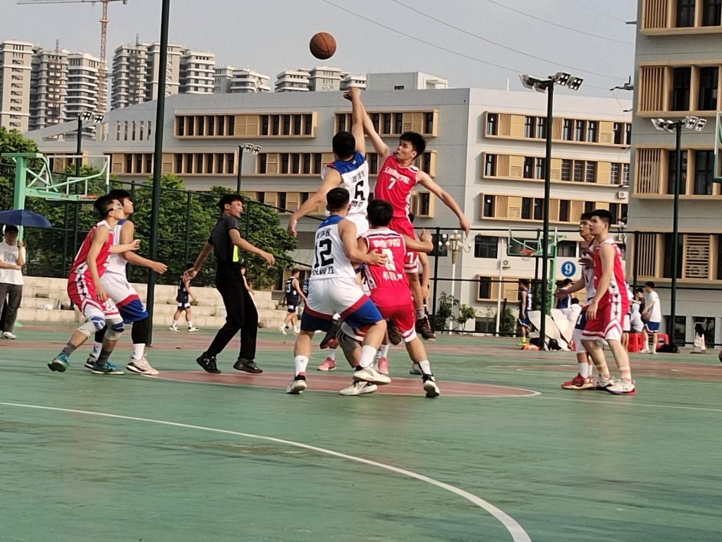 5月6日下午,数统公司和商公司在新田径场4号篮球场进行篮球比赛。一阵阵热风席卷而来,太阳火辣辣地炙烤着大地。球员们并没有因为天气的原因而受影响,他们精力充沛,跃跃欲试。