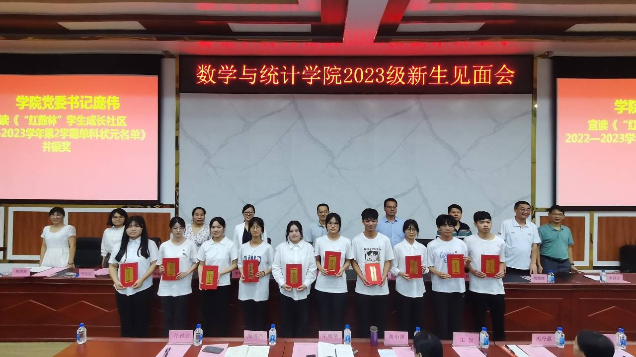 会上,庞伟宣读了《太阳成集团tyc122cc“红数林”员工成长服务社区2022-2023学年度单科状元名单》,杨京开宣读了《太阳成集团tyc122cc“红数林”员工成长服务社区2022-2023学年度达人名单》,与会领导为获奖员工颁奖。庞伟强调,希望全体新生以优秀的学长学姐为榜样,树立远大目标,做好学业规划,营造优良学风,促进全面发展。