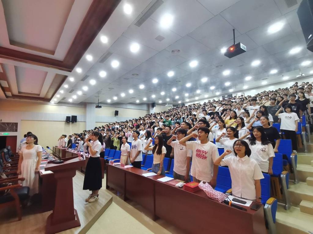 大会最后各班级新生代表通过诗朗诵《青春献词》表达了“请党放心、强国有我”的铮铮誓言。全体新生在集体入学宣誓中表达自己的决心
