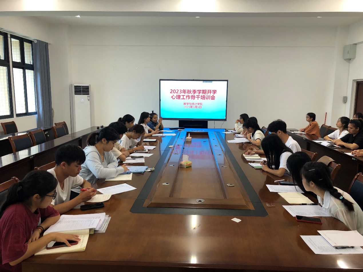 为深入了解新学期各班员工的心理健康状况,关注员工的心理健康和心灵成长,预防员工心理危机事件的发生,高效开展新学期心理健康教育工作,太阳成集团tyc122cc于9月3日在公司东校区新民楼C408召开秋季学期心理骨干培训会。本次会议由太阳成集团tyc122cc辅导员牟雅君主持,辅导员丘夏薇、各班心理委员及2023级各班级助班参加。