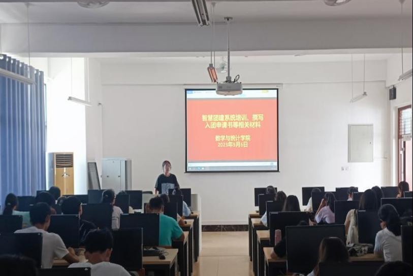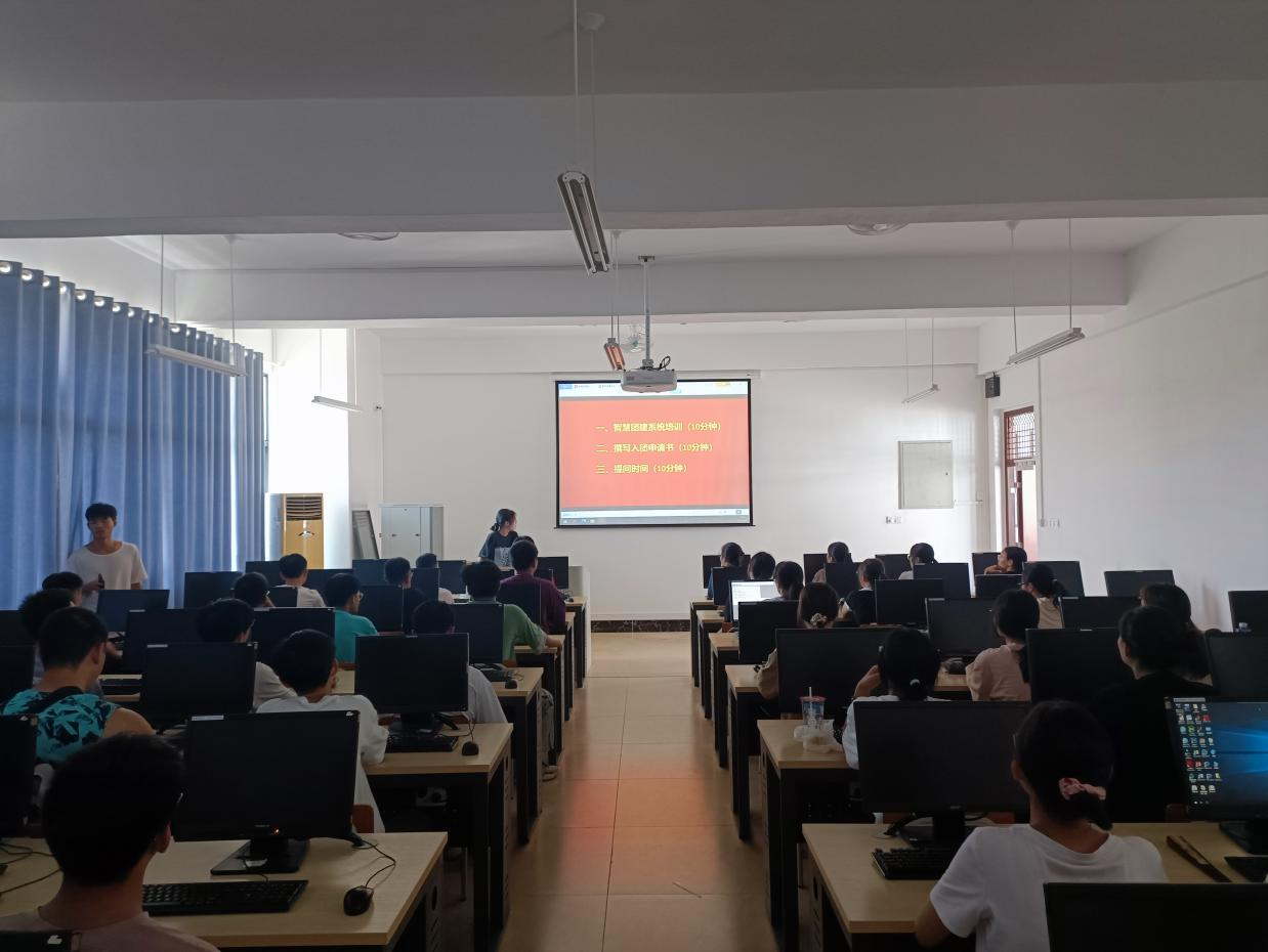 9月6日,太阳成集团tyc122cc在新民楼C203、C204机房召开入团申请书撰写暨智慧团建系统培训会,2023级全体新生及助班参加,会议由团委组织部负责人韦丹丹主持。