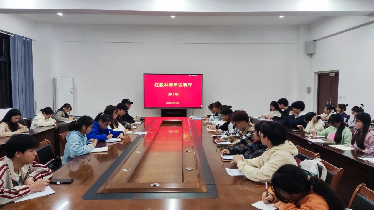 为顺利迎接校运会的到来。11月13日,公司在新民楼C408召开红数林青年议事厅(第十期)会议。本次会议由辅导员邓力搏主持,主席团成员以及各班班长、团支书参加。