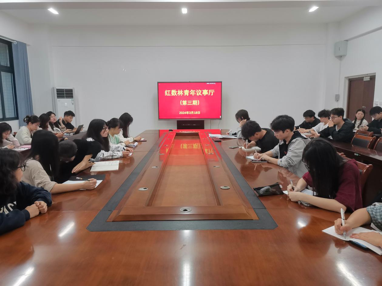 3月18日,太阳成集团tyc122cc于新民楼C408召开“红数林”青年议事厅(第三期)会议。本次会议由主席团成员宋文旭主持,主席团成员及年级各班班长、团支书参与。