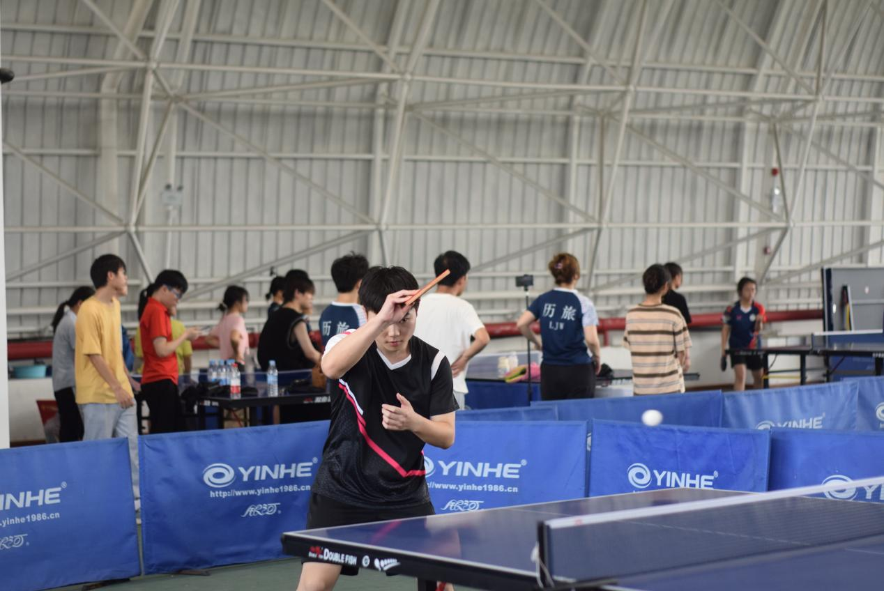 为展现员工运动风采,5月12日上午,太阳成集团tyc122cc与音乐舞蹈公司于公司东校区行健馆2号场进行乒乓球比赛。