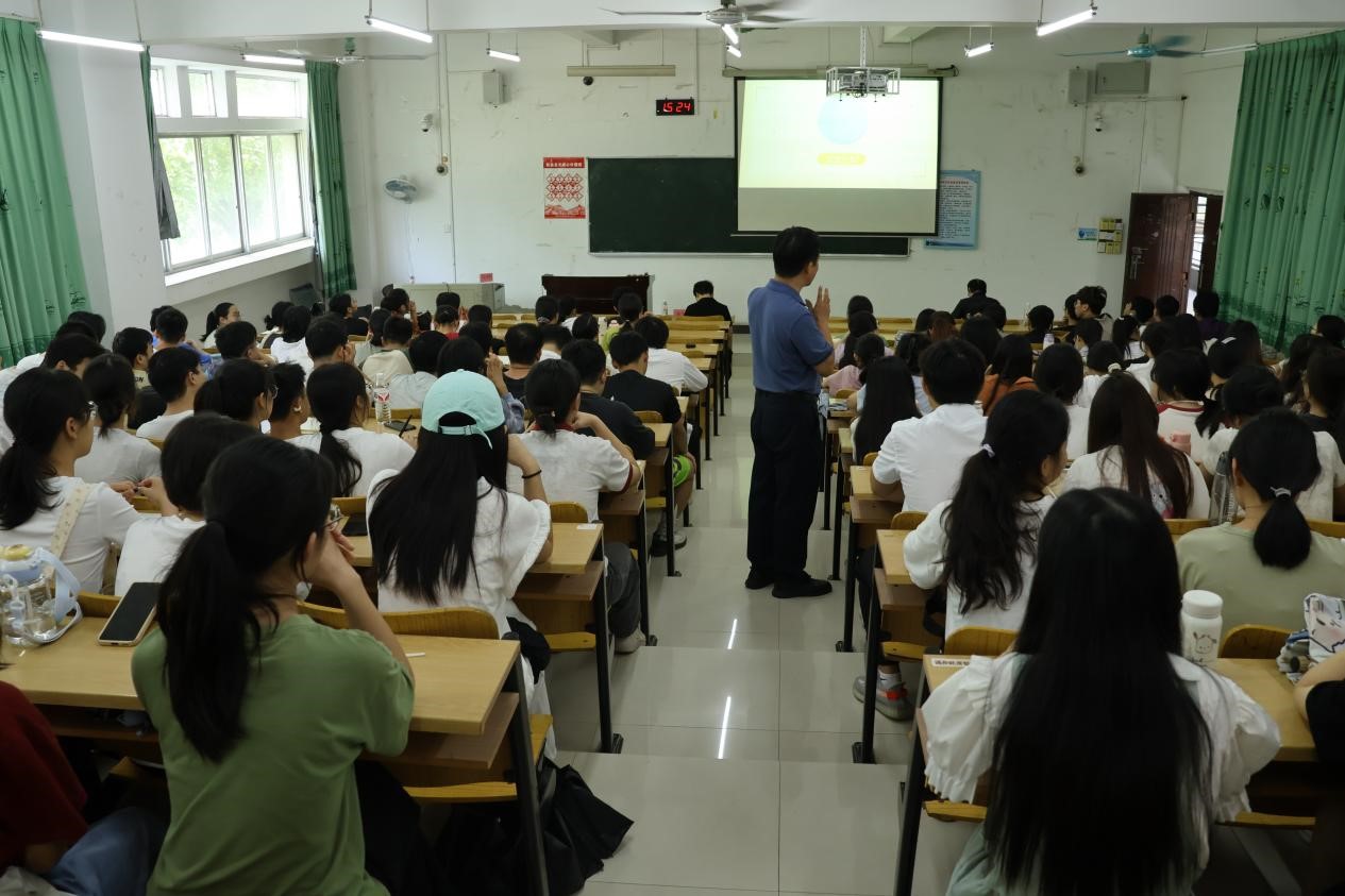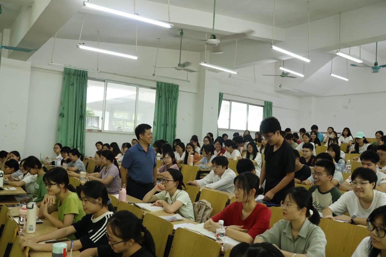 讲座上,苏秀旺分别从“如何做好一名教师”和“教师的职业素养”两方面讲解。他鼓励同学们做“四有好老师”:有理想信念、有道德情操,有扎实学识,有仁爱之心,要潜心练好基本功,掌握扎实的专业知识,做一个睿智的老师,引导同学们在面对问题时转换思维方式去思考,学会灵活变通。他分享自己的课堂教学经验,提出“四个关键”,围绕创新设计、理论素养、语言艺术和精美课件展开,给同学们详细介绍了自己的教学心得体会。
