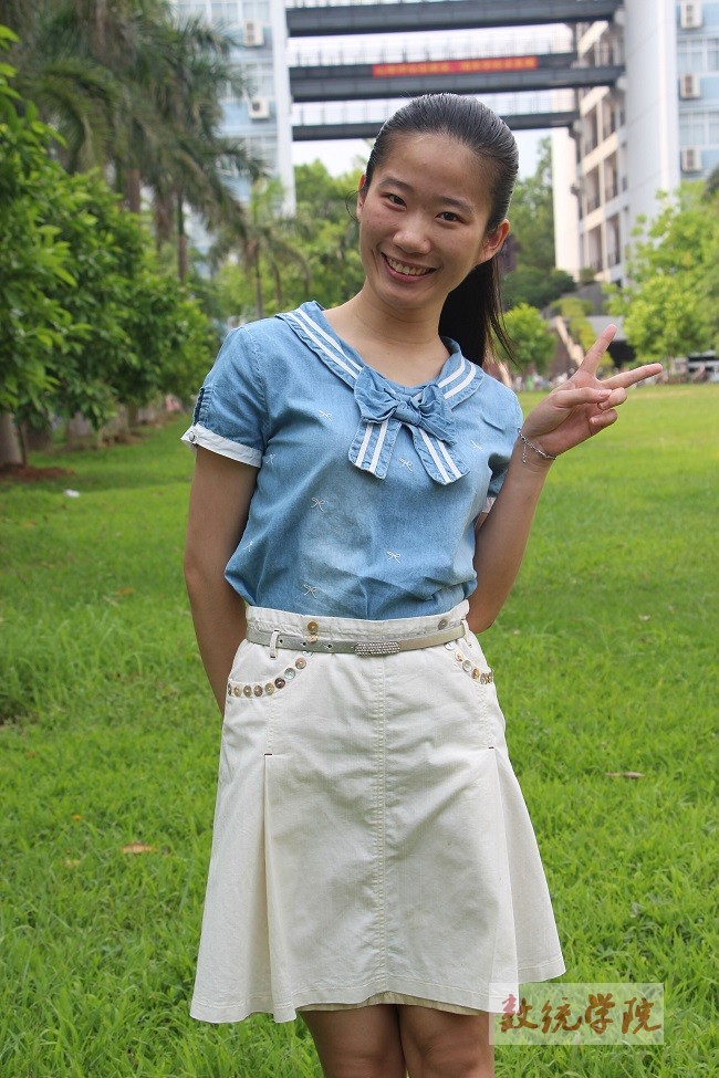 五月的天,燥热的空气,她却无比平静,微笑时时挂于脸上,热情地跟师弟师妹们打招呼。对于学弟学妹们,她有着很多话要说:“首先是戒懒,在学习和工作都要努力,制定一个属于自己的目标,向着目标前进,才能够离成功更进一步。”